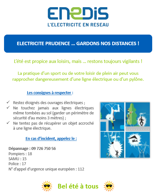 Electricité prudence… Gardons nos distances ! Mairie8 juillet 20210 Soyons prudents pendant l’été !!! 😎